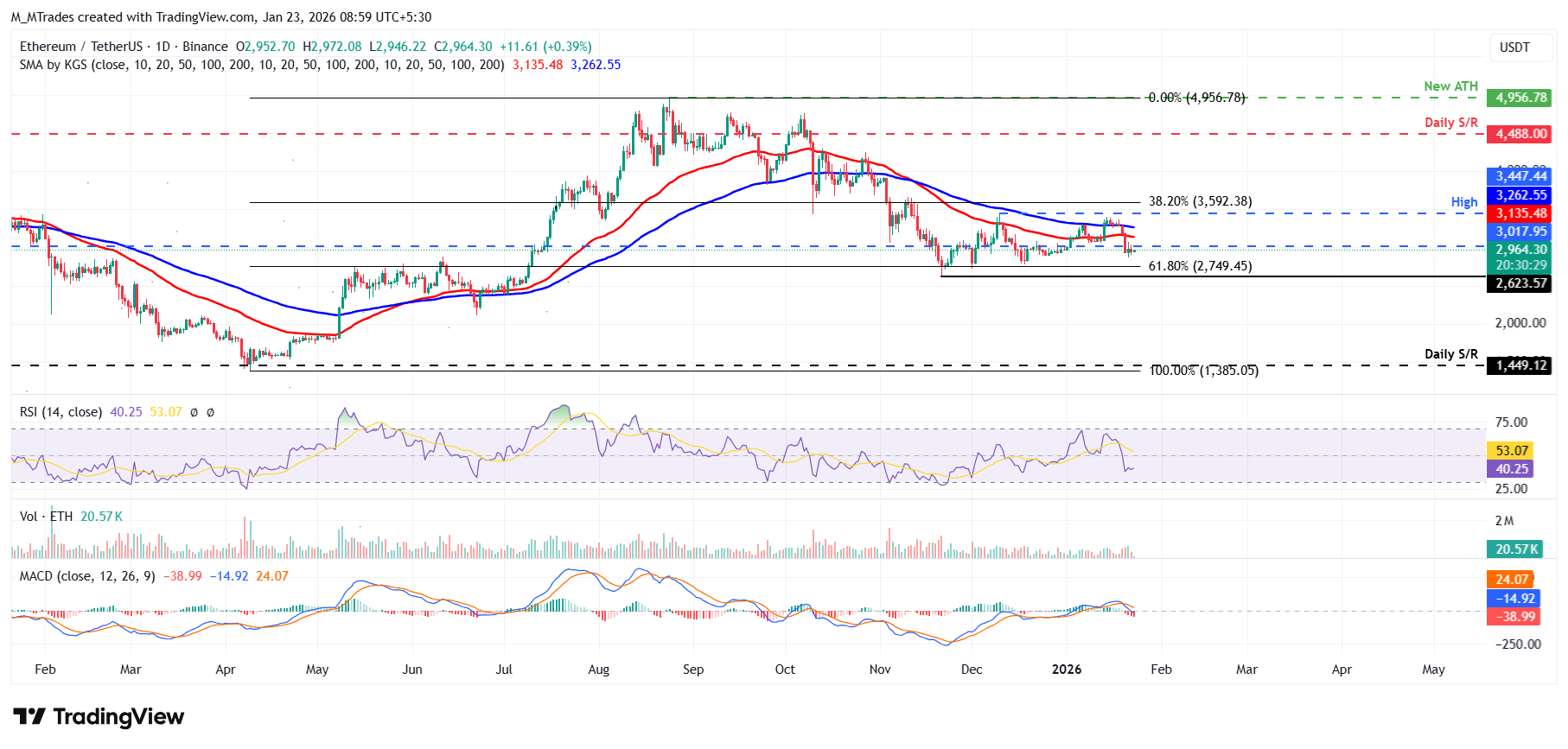 If the daily level at $3,017 continues to hold as resistance, ETH could extend the decline toward the 61.8% Fibonacci retracement level (drawn from the April low of $1,385 to the August all-time high of $4,956) at $2,749.45.