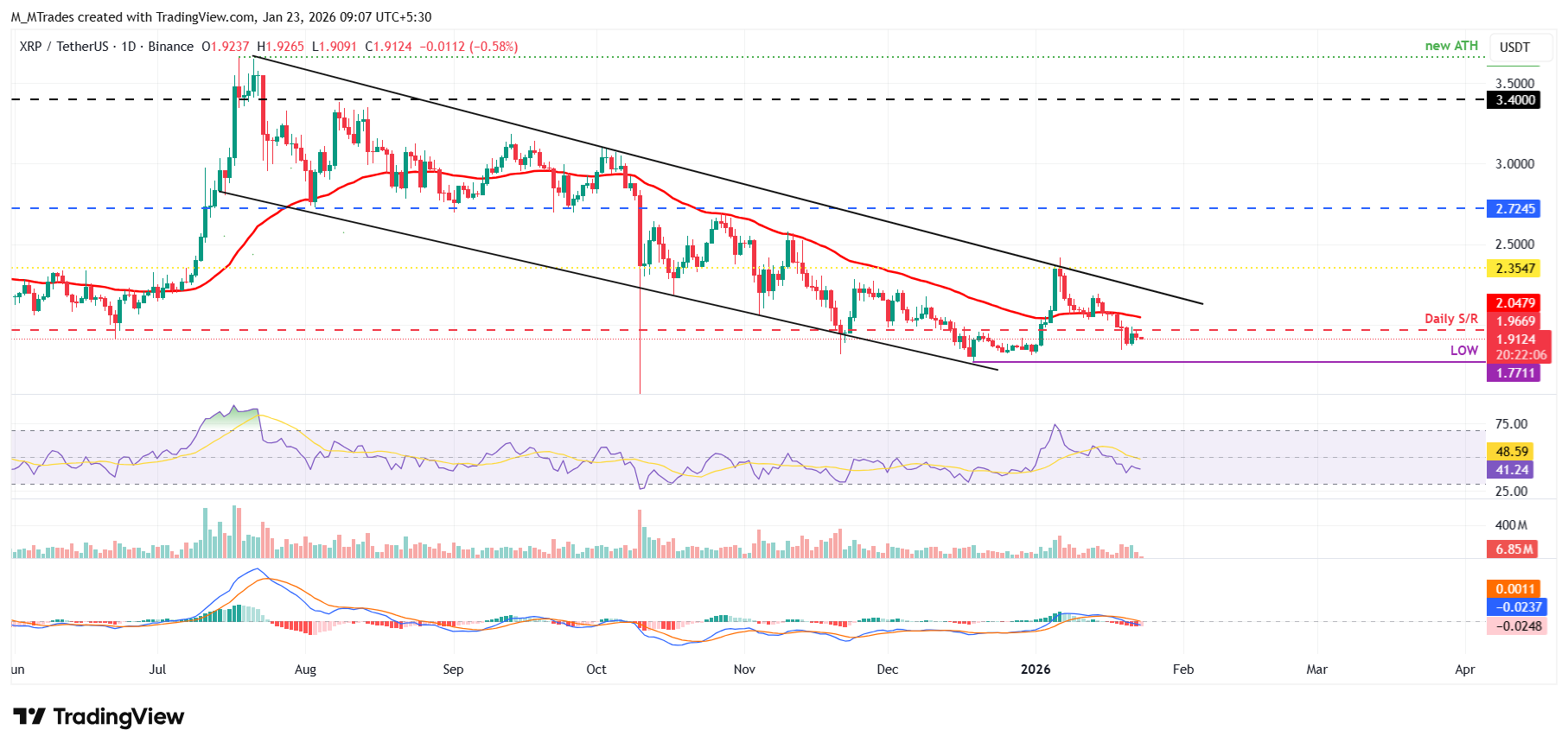 Like Ethereum, XRP's momentum indicators (RSI and MACD) also support a bearish view.