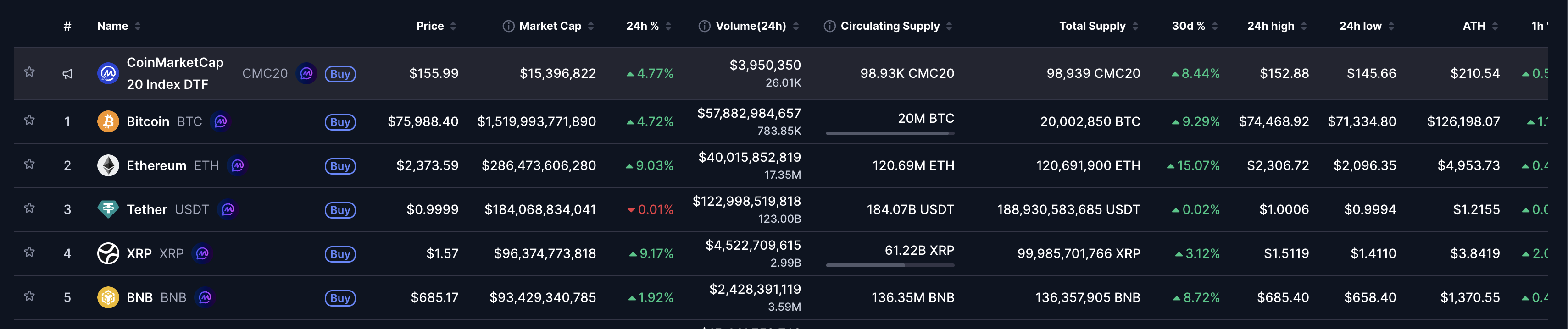 Bitcoin trades above $75,000 for the first time since the start of the Middle East war, lifting altcoins as well. At the time of writing, Ethereum and Ripple are above $2,300 and $1.50, respectively, on Tuesday, with over 9% gains in the last 24 hours, extending the fresh recovery.