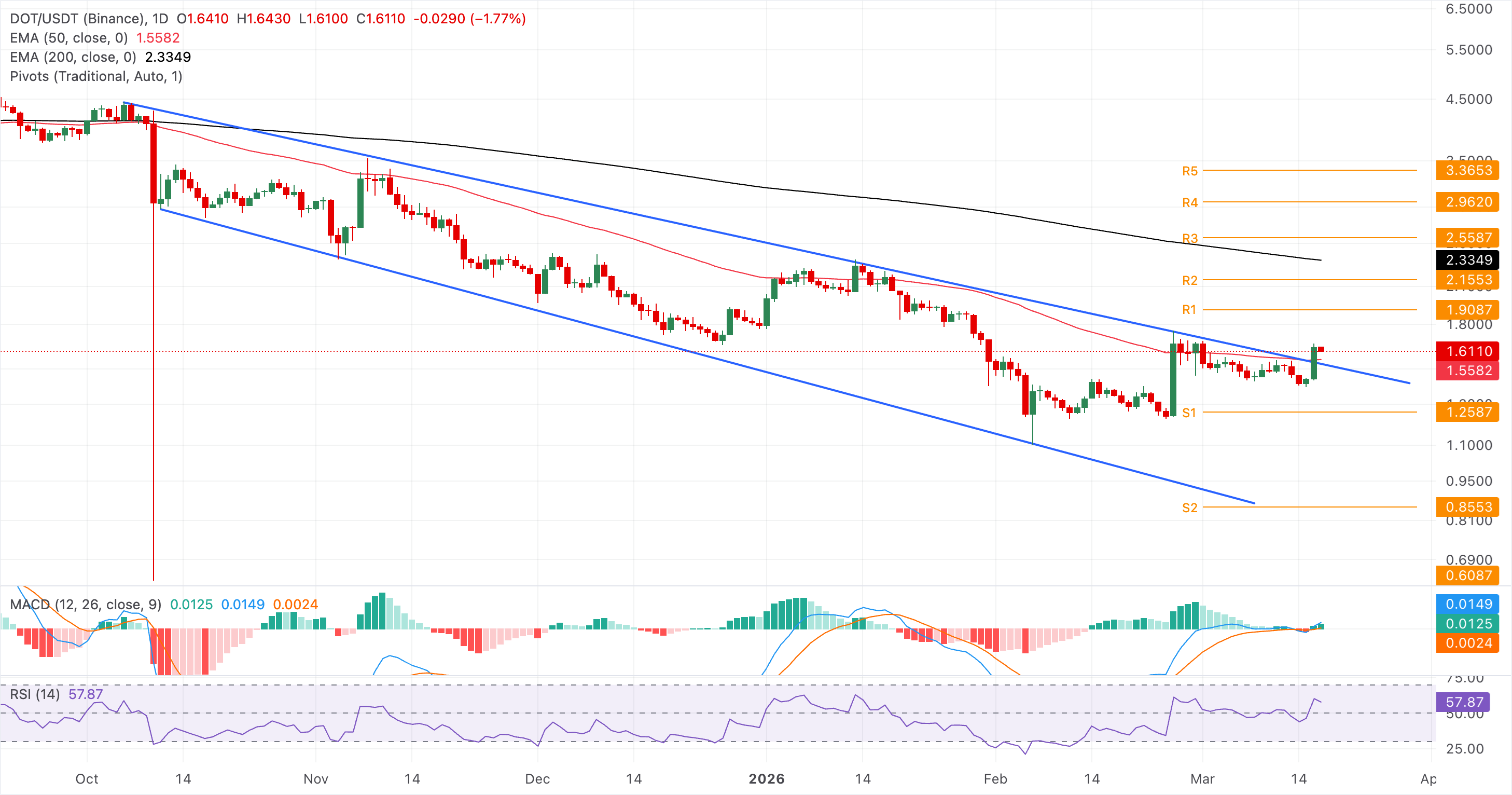 The upside target for DOT remains the R1 Pivot Point at $1.90, while bulls target the $2.00 psychological level.