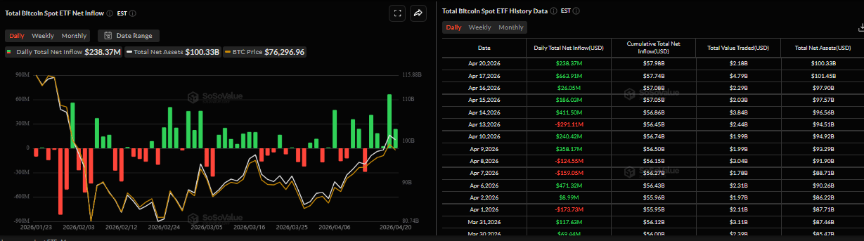Bitcoin Price Forecast: BTC climbs above $76,000 as ETF inflows, Strategy buying offset US-Iran uncertainty
