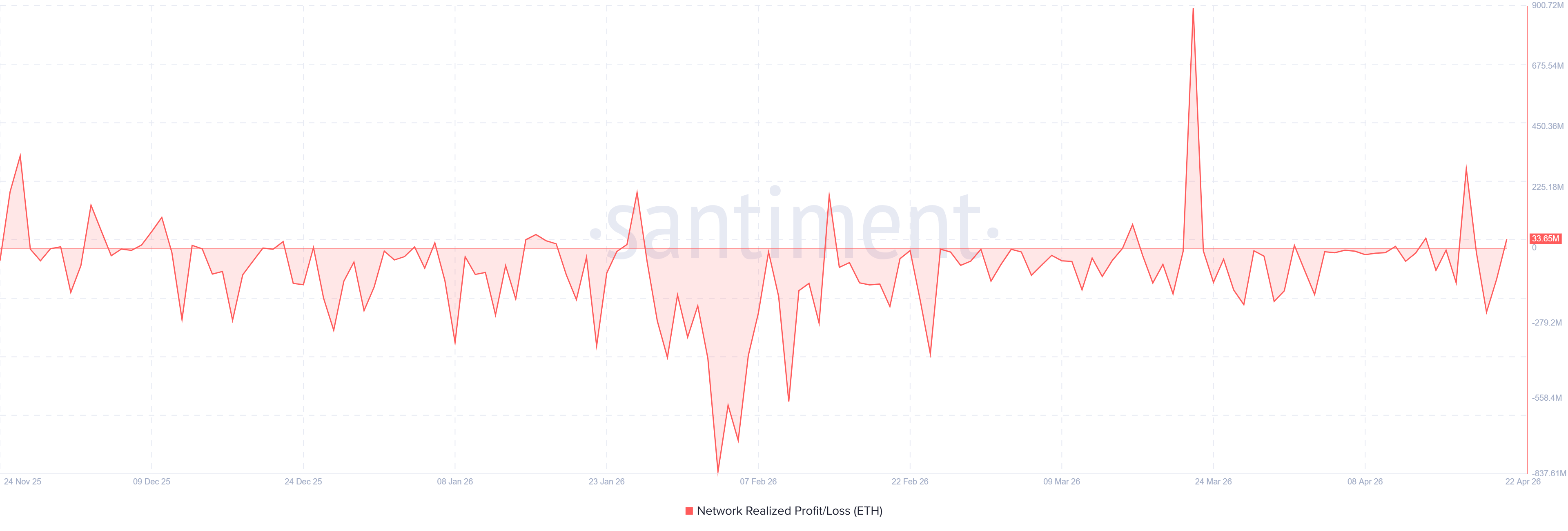 ETH Network Realized Profit/Loss. Source: Santiment