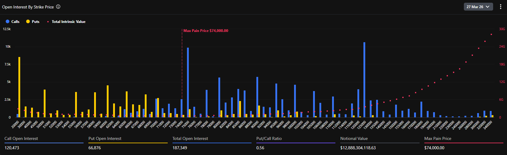 BTC open interest by strike price for the March 27 chart. Source: Derbit