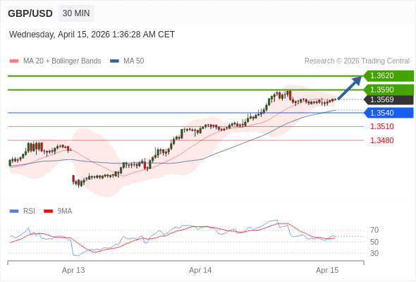 Long positions above 1.3540 with targets at 1.3590 & 1.3620 in extension.