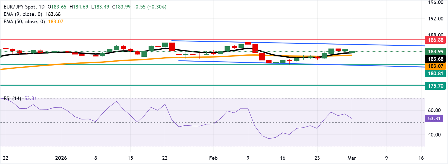 EUR/JPY Price Forecast: Hovers around 184.00 above nine-day EMA