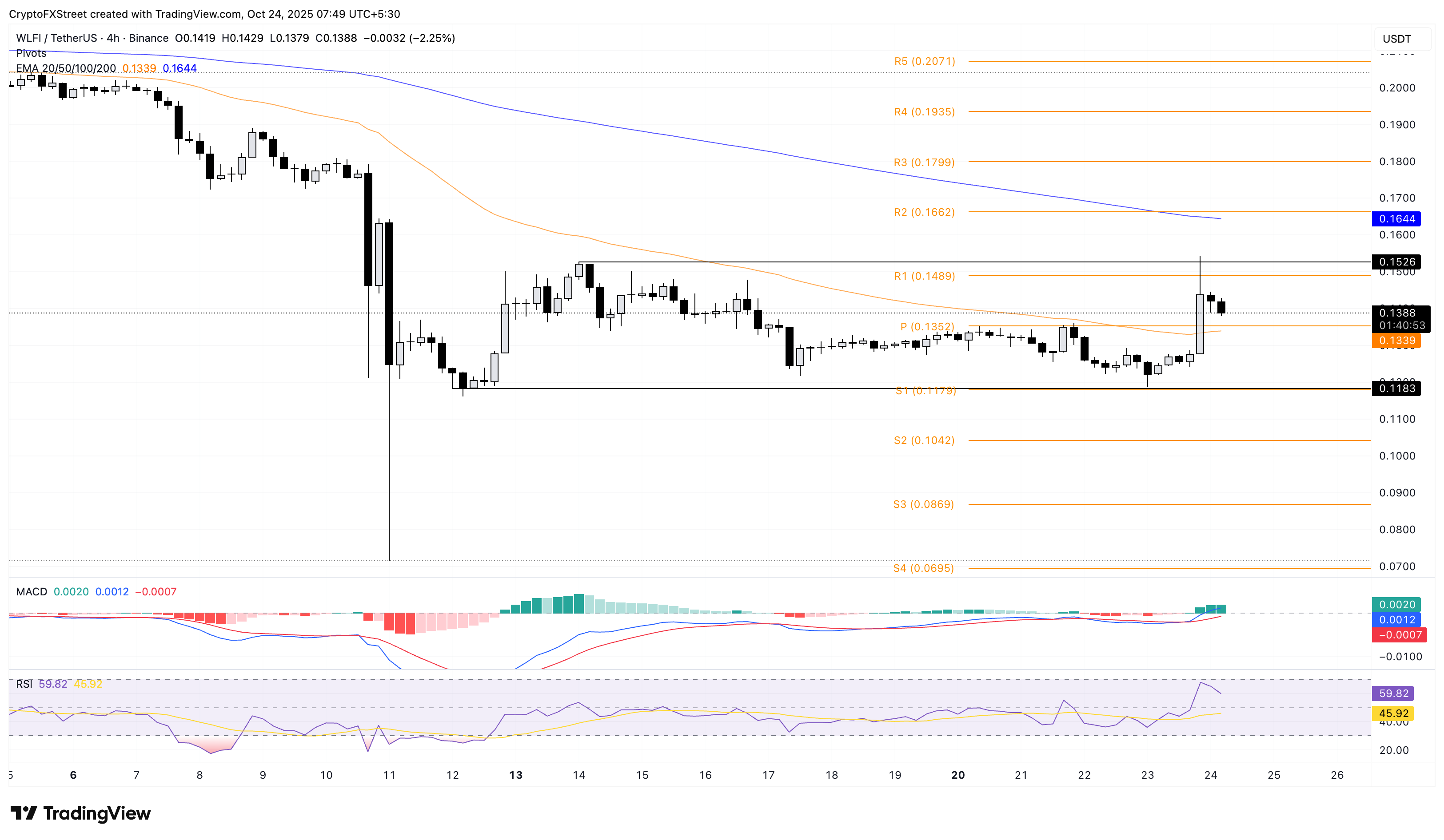 World Liberty Financial holds steady above $0.1350 at press time on Friday, following a 16% rise on the previous day. The WLFI token is trading in a sideways range between the $0.1183 baseline and the $0.1526 ceiling on the 4-hour chart.
