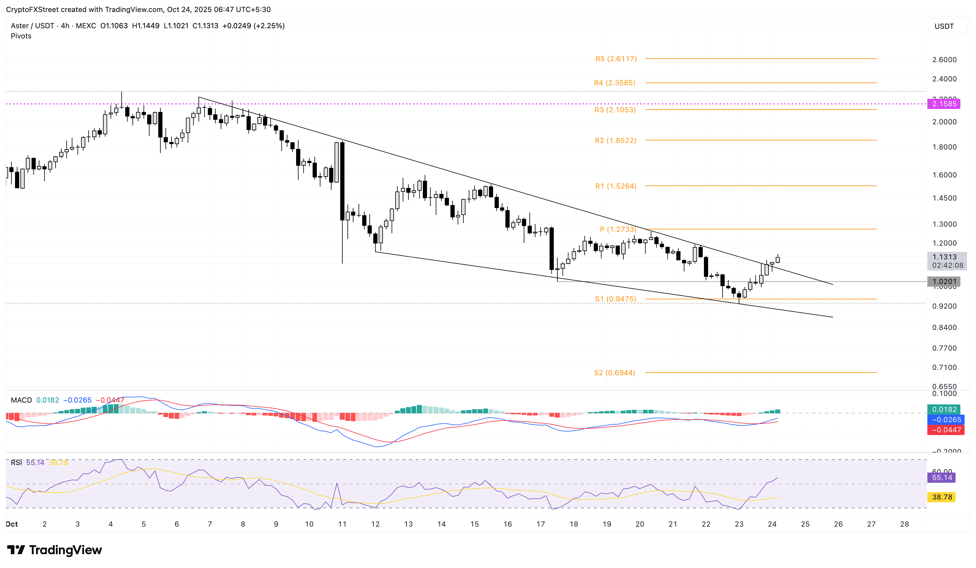 ASTER/USDT 4-hour price chart.