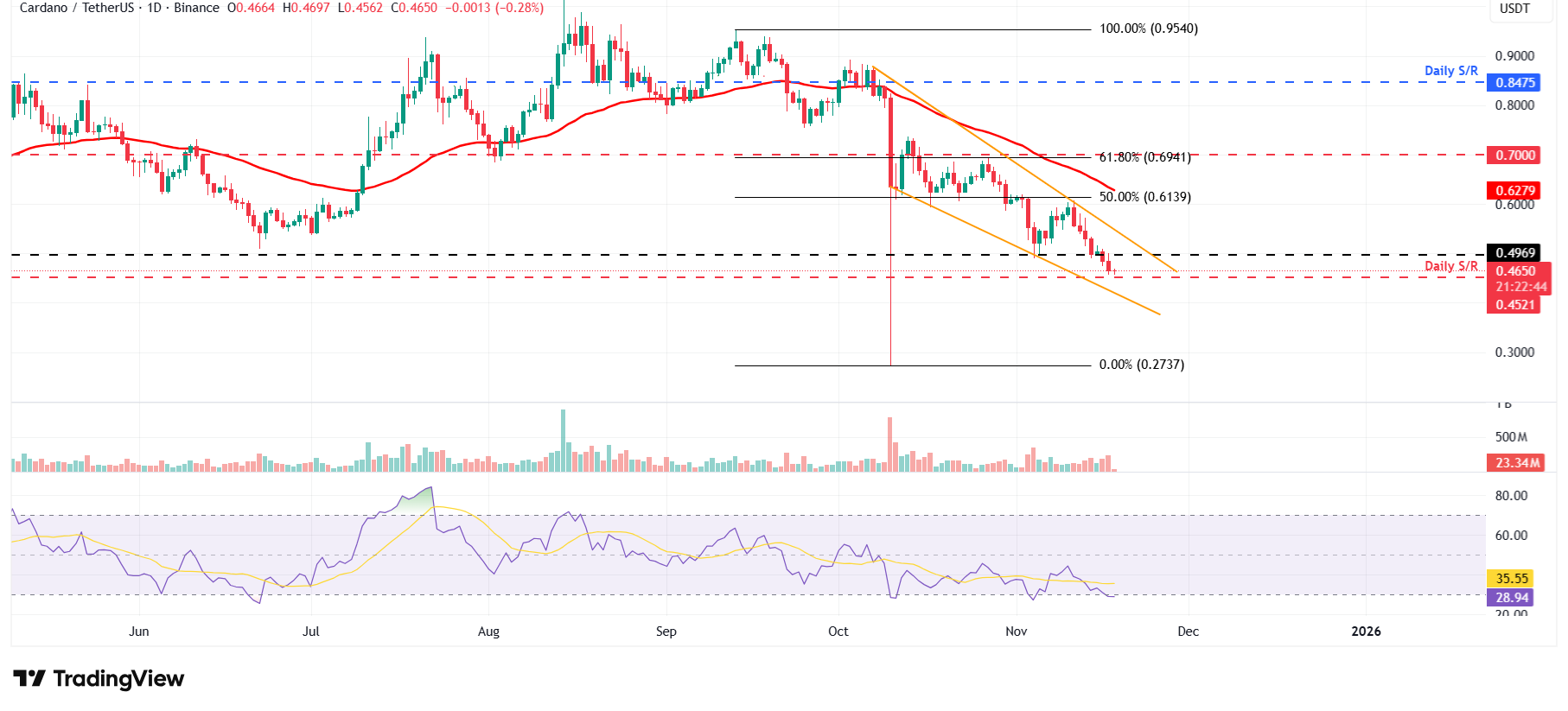 On the other hand, if ADA closes below $0.45, it could extend the decline toward the key psychological level at $0.40.
