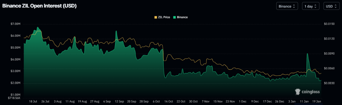 Zilliqa open interest chart at Binance exchange. Source: Coinglass