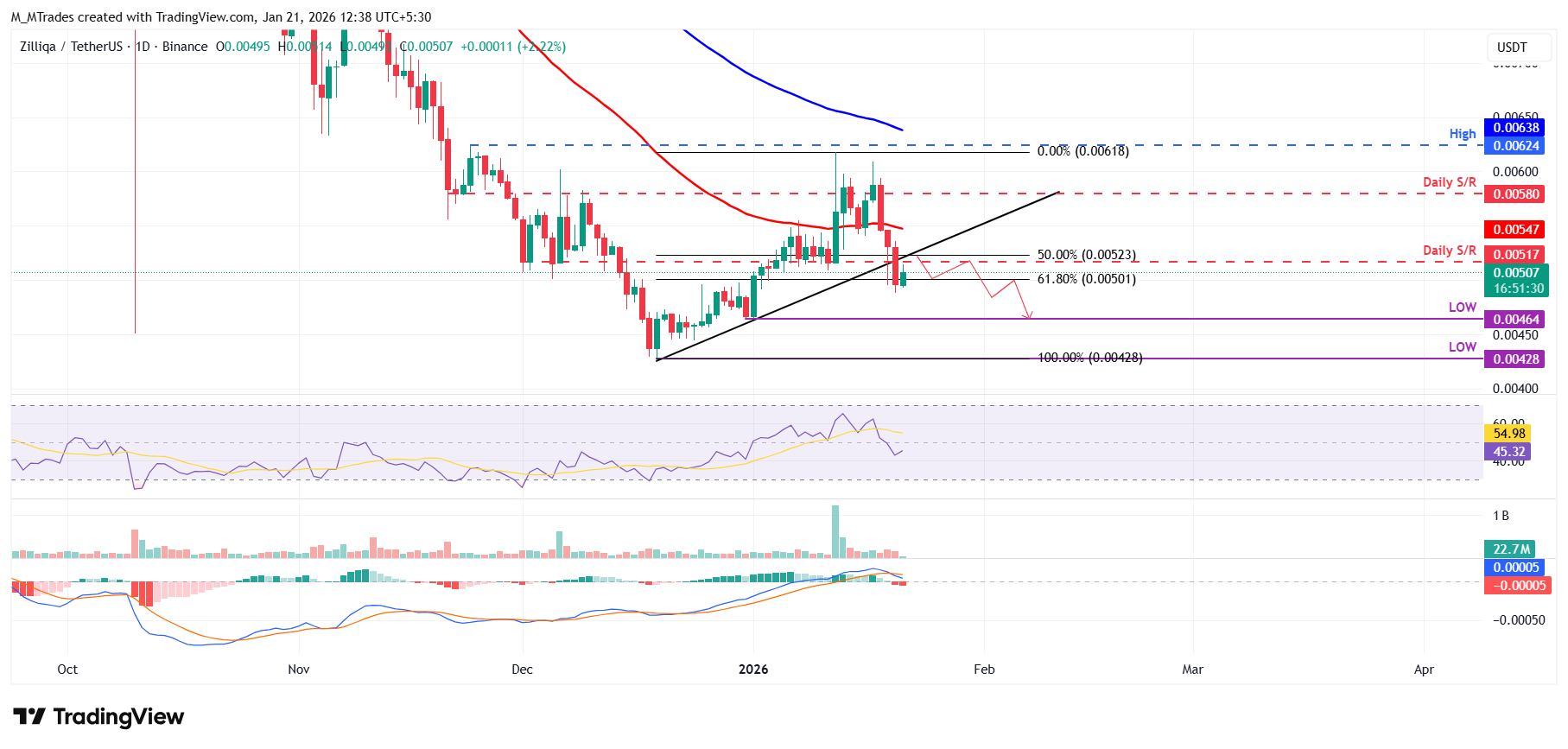 If ZIL faces rejection from these resistance levels, it could extend the decline toward the December 31 low of $0.0046.