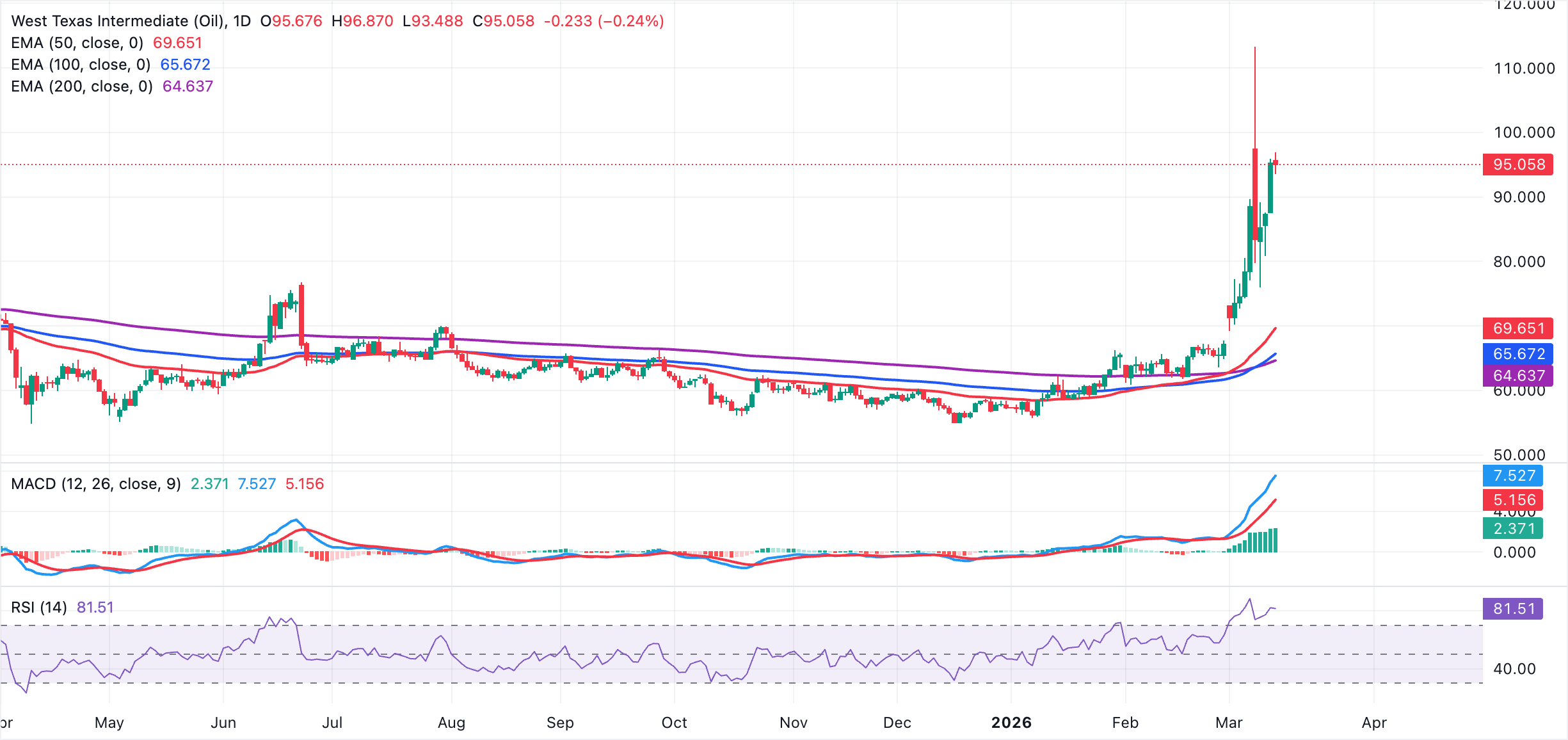 Oil prices keep rising, with the WTI price hitting a daily high of $97 before adjusting to $95 at the time of writing. On Monday, WTI traded at a high of $113 – not seen since June 2022 – and a low of $80, underscoring the impact of the war on Oil prices.