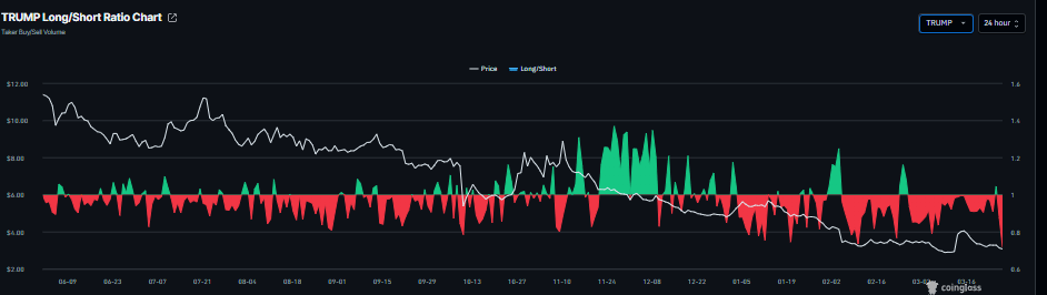 TRUMP long-to-short ratio chart. Source: Coinglass