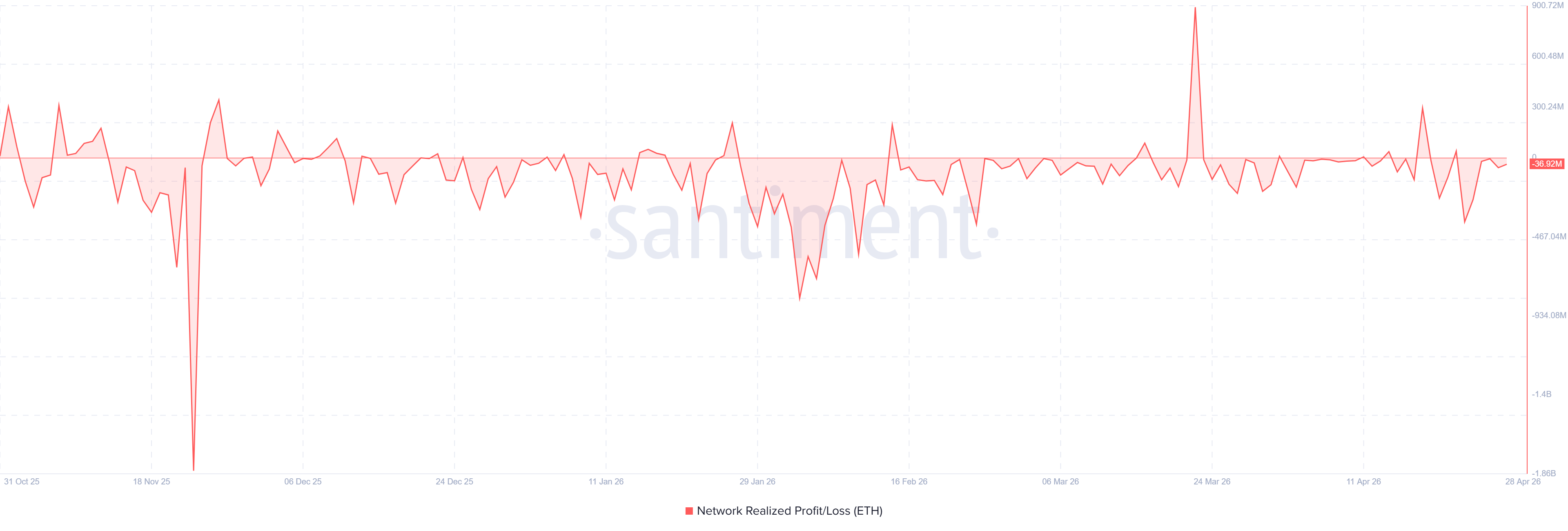 ETH Network Realized Profit/Loss. Source: Santiment