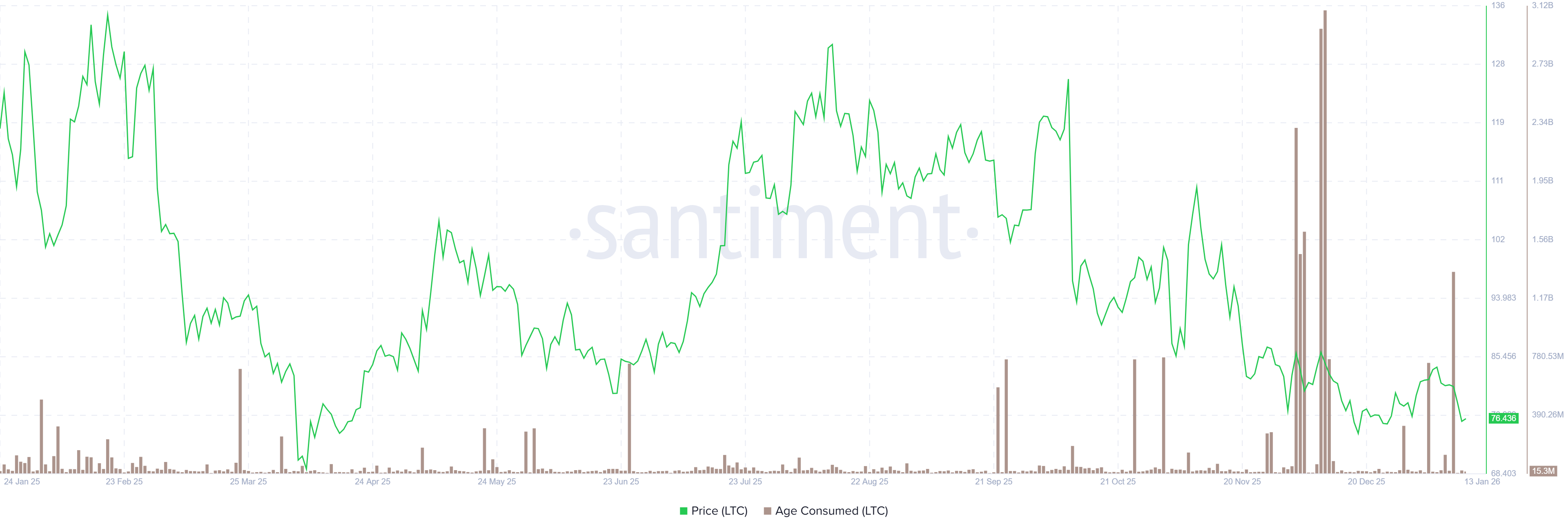 Litecoin age consumed chart. Source: Santiment