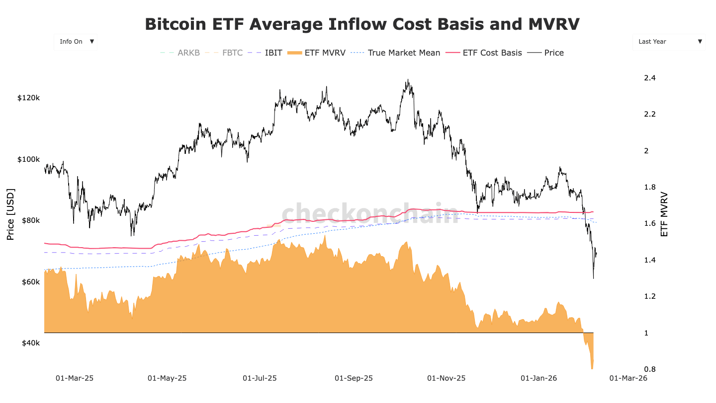 นอกจากนี้ข้อมูลจาก Checkonchain ยังเปิดเผยตัวเลขสำคัญที่น่าจับตามองคือ ต้นทุนเฉลี่ยของกองทุน ETF สหรัฐฯ นั้นอยู่ที่ 82,000 ดอลลาร์ ซึ่งหมายความว่าผู้ถือหน่วยลงทุนส่วนใหญ่กำลังขาดทุน ทำให้เกิดแรงกดดันมหาศาล และหากตลาดยังคงซ้ำรอยเดิม จุดต่ำสุดที่แท้จริงอาจลงไปลึกกว่า 50,000 ดอลลาร์ ซึ่งเป็นจุดที่นักลงทุนสถาบันอาจต้องยอมจำนนขายตัดขาดทุนออกมา