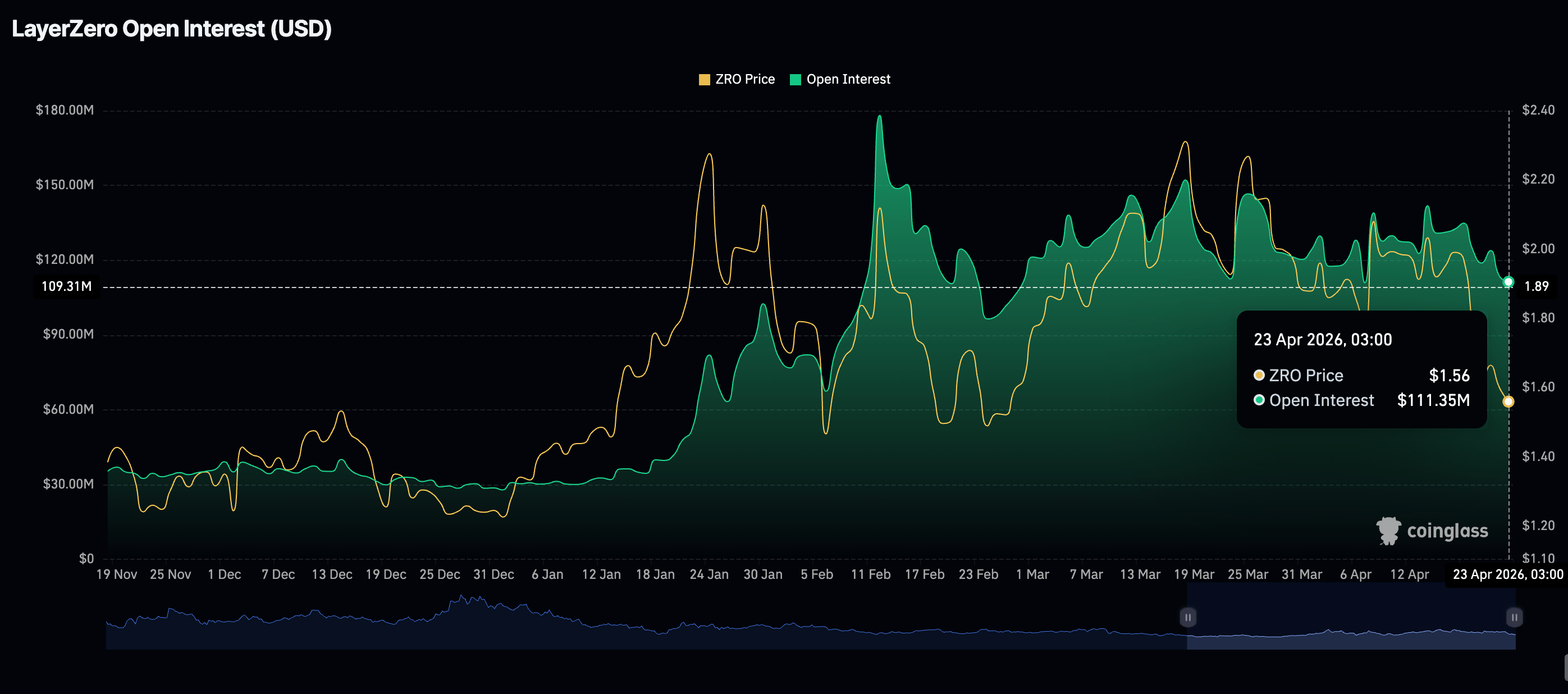 LayerZero (ZRO) is trading at $1.58 at the time of writing on Thursday, rising from the daily low of $1.54. Despite sentiment broadly improving across the crypto market, interest in ZRO has remained subdued, especially in the retail market.
