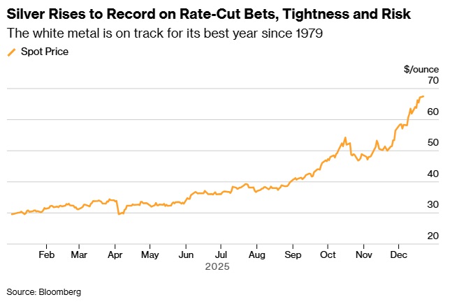 彭博社分析稱,在地緣政治緊張局勢加劇以及市場預期美聯儲明年將進一步降息的背景下,黃金價格繼續走高,白銀價格攀升至歷史新高。