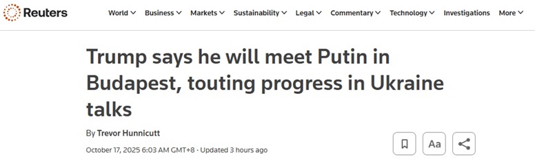 FX168財經報社(亞太)訊 英國路透社週五(10月17日)報道稱,美國總統特朗普(Donald Trump)和俄羅斯總統普京(Vladimir Putin)週四同意就烏克蘭戰爭舉行另一次峯會,在這一意外舉動之前,莫斯科擔心美國將向基輔提供新的軍事支持。