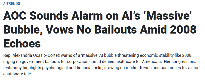 奧卡西奧-科爾特斯是第一批公開對 AI 泡沫進行評論的國會議員之一。