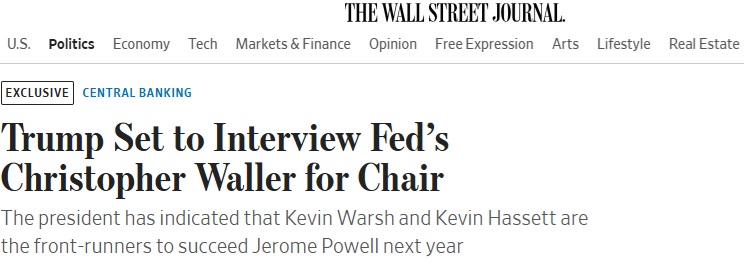 在這些被納入考慮範圍的候選人中,沃勒在《華爾街日報》10月對經濟學家所做的調查中,被評爲首選人選。