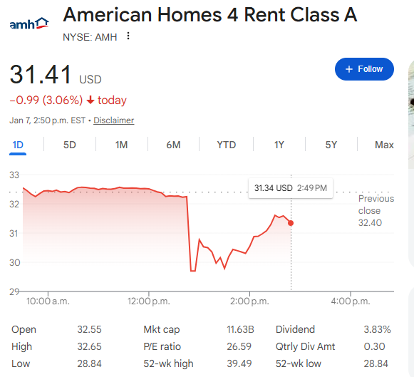 市場隨即出現明顯反應。特朗普發文後,黑石股價一度下跌9.3%;獨棟住宅租賃領域的代表性公司Invitation Homes一度下跌約9%;美國單戶住宅租賃公司AMH短線下挫並觸發交易暫停。此前,Invitation Homes曾與黑石存在股權淵源,被視爲獨棟租賃產業鏈的重要標的之一。建材供應商Builders FirstSource股價下挫約5%。