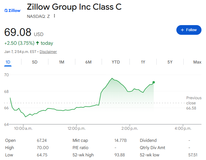 主要房屋銷售商的股價則應聲上漲,Zillow股價上漲4.5%,至69.58美元;Compass股價上漲14%,至12.32美元;Remax股價上漲1.3%,至7.83美元;Rocket Companies股價上漲2.2%,至21.67美元;Anywhere Real Estate股價上漲22%,至17.64美元。