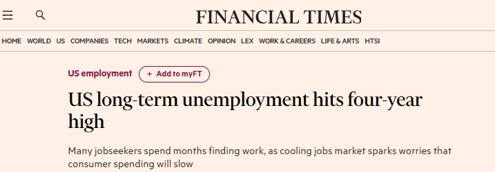 FX168財經報社(亞太)訊 英國《金融時報》週一(1月26日)報道稱,美國失業人員找到新工作的時間比過去四年任何時候都要長,招聘活動低迷加劇了人們對勞動市場的擔憂。