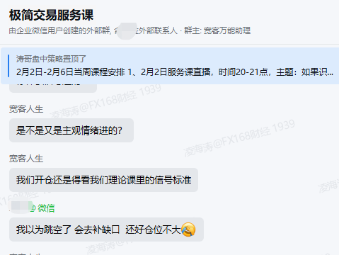 就在這樣的混亂之中,有同學悄悄佈局了原油多單,消息傳到寬客老師耳中,他一眼便識破了問題的核心:這又是一次典型的主觀交易,是情緒戰勝理性的衝動操作。面對這樣的情況,寬客老師沒有姑息,而是給出了嚴厲的批評與警醒——我們來到市場學習交易,不是爲了重複「憑感覺下單」的錯誤,而是要在課程的打磨中,學會敬畏市場、控制情緒,努力遠離情緒交易的深淵,這纔是交易成長的核心要義。
