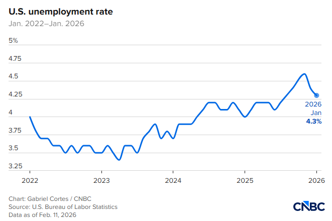 FX168財經報社(北美)訊 2026年開局美國就業增長強於預期,緩解市場對勞動力市場走弱的擔憂。美國勞工統計局(BLS)週三(2月11日)公佈的數據顯示,1月非農就業新增13萬人、顯著高於預期,失業率小幅回落,消息公佈後市場走強。
