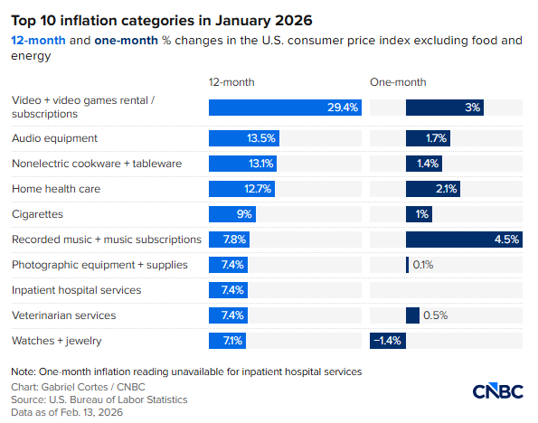 資產管理公司Glenmede的首席投資策略與研究負責人傑森·普賴德(Jason Pride)在週五的一份報告中寫道,1月通脹放緩「覆蓋面相對廣泛」,但服務業中仍存在「一些加速的口袋」,尤其是交通運輸成本。
