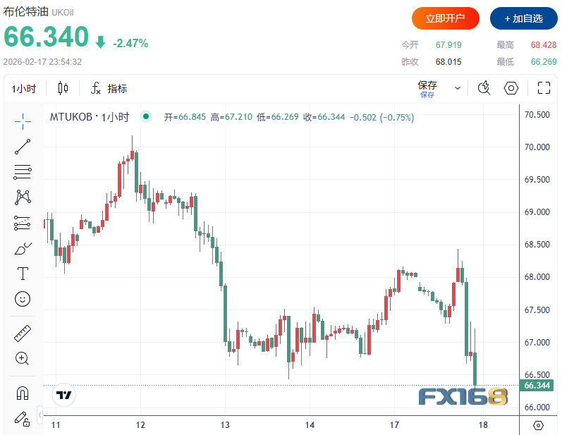 布倫特原油期貨一度升至68.428美元/桶高點,隨後自高位大幅回落至66.269美元/桶。