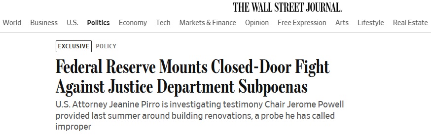 1月8日,在白宮舉行的一場活動中,皮羅在場,當時特朗普嚴厲批評其聯邦檢察官,指責他們未能足夠迅速地起訴他所關注的對象。次日,美國司法部向美聯儲發出兩份傳票。傳票要求美聯儲在1月底前作出迴應。