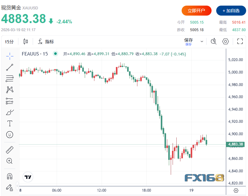 美聯儲如預期維持利率不變,現貨黃金短線走高10美元,報4895.32美元/盎司。