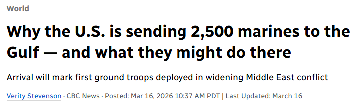 與此同時,CBC News報道稱,美國正向中東部署約2500名海軍陸戰隊,這是自2月28日美以對伊朗發動行動以來,首批正式增派到該地區的美軍地面部隊。分析人士認爲,這支快速反應部隊未來最可能的任務,是協助重開霍爾木茲海峽,包括控制靠近航道的小型島嶼、部署防空系統、配合海軍護航以及實施更廣泛的空中與網絡支援。