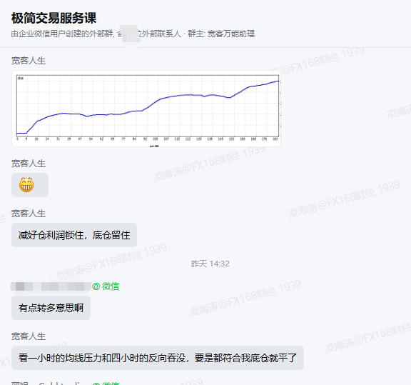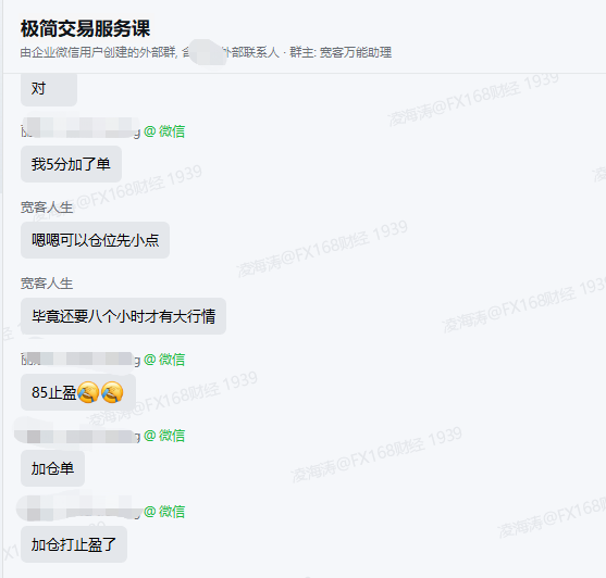 當天行情變數頗多,貴金屬區間震盪反覆、原油多空博弈激烈,不少散戶陷入「看不懂方向、拿不住單子」的困境,要麼踏空行情,要麼誤判點位虧損離場。而在《極簡交易方法論》服務羣內,全程沒有盲目猜盤、沒有主觀臆斷,寬客老師依託成熟體系,實時梳理行情邏輯、明確關鍵點位,從品種篩選、倉位把控、入場時機到離場信號,每一步都給出清晰指令,讓學員不用糾結、不用迷茫,只需嚴格跟隨信號執行即可。