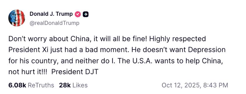美國總統特朗普在Truth Social上的發言引發市場暴跌,又以同樣方式助力市場回升。