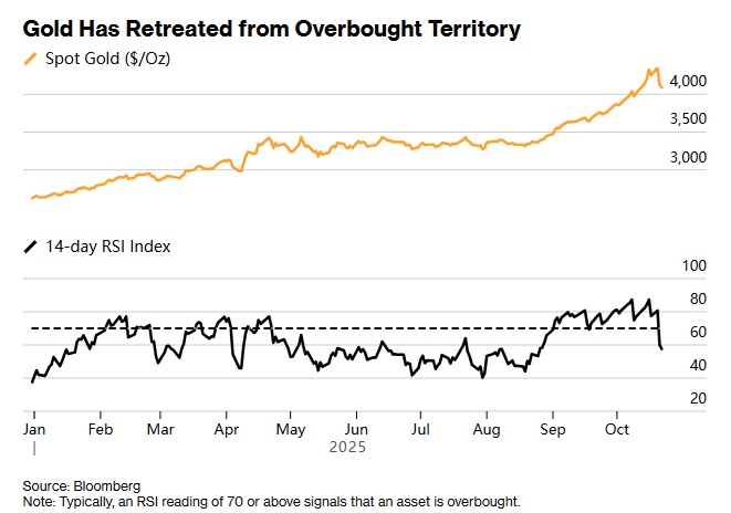 技術指標顯示,本輪漲勢可能略顯過度,本週的回調令市場略顯疲態。所謂的「貶值交易」是指投資者規避主權債務和貨幣,以保護自身免受失控的預算赤字衝擊。自8月中旬以來,這種交易一直是金價上漲的驅動力。