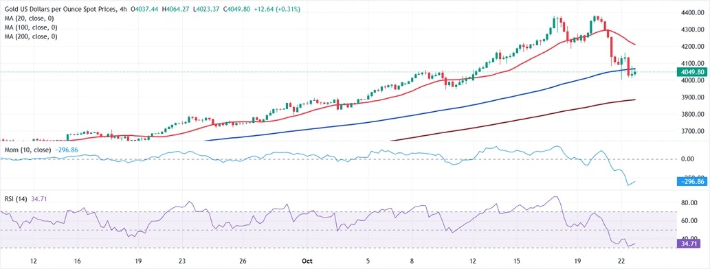 24K99訊 週四(10月23日)亞市盤中,現貨黃金再度遭遇拋售,目前金價位於4074美元/盎司附近,日內重挫近25美元。FXStreet首席分析師Valeria Bednarik撰文,對黃金技術前景進行分析。