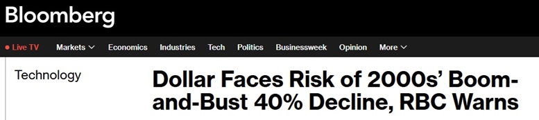 FX168財經報社(亞太)訊 加拿大皇家銀行資本市場(RBC Capital Markets)指出,一旦支撐美元的因素轉爲逆風,交易員應防範美元可能出現曠日持久的拋售,這種拋售可能重現互聯網泡沫的繁榮與蕭條週期。