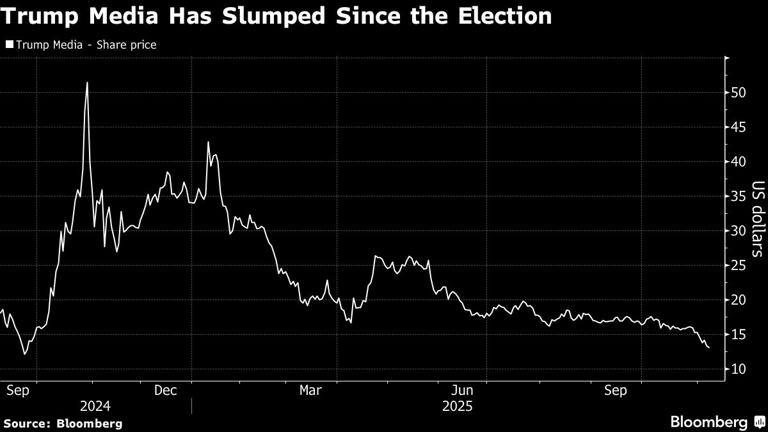 受業績不振影響,TMTG股價本週五(11月7日)盤中一度下跌4.7%至12.70美元,創下自2024年9月以來最低收盤價。自今年1月創下42.91美元 的高點以來,股價已累計暴跌約70%。