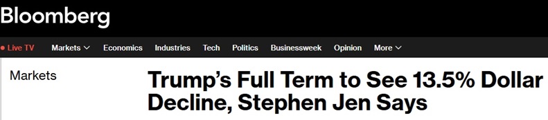 這位總部位於倫敦的資產管理公司Eurizon的首席執行官——以其「美元微笑」理論而聞名——押注美元指數在美國總統特朗普(Donald Trump)剩餘的總統任期內將進一步下跌13.5%。