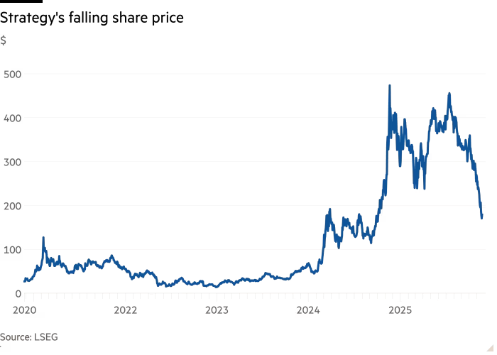 由Michael Saylor領導、全球最大企業比特幣持有機構的Strategy公司,其股價在過去三個月內暴跌50%,拖累衆多效仿者同步下挫。