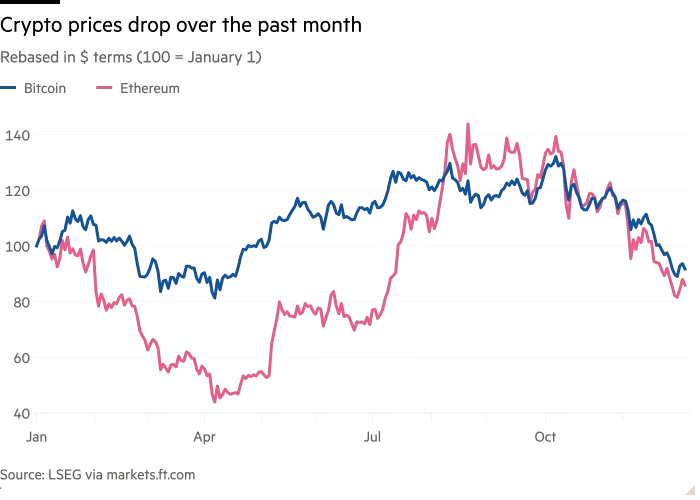 然而,隨着今年秋季投機資產遭遇猛烈拋售,加密貨幣成爲重災區,這一模式迅速降溫,儘管此前該行業曾因美國總統特朗普承諾將把美國打造爲「比特幣超級大國」而備受提振。