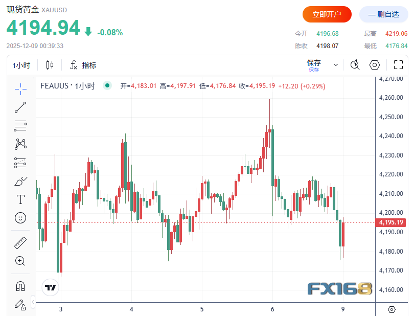 儘管日內金價短線承壓,但整體情緒依然偏多。市場原本普遍預期美聯儲將在爲期兩天的政策會議上宣佈降息,美元指數回落亦爲金市提供助力。然而,在美市盤中,國際金銀短線突然異動,現貨黃金急跌超20美元至4176.84美元/盎司低點,日內跌幅擴大至0.4%。