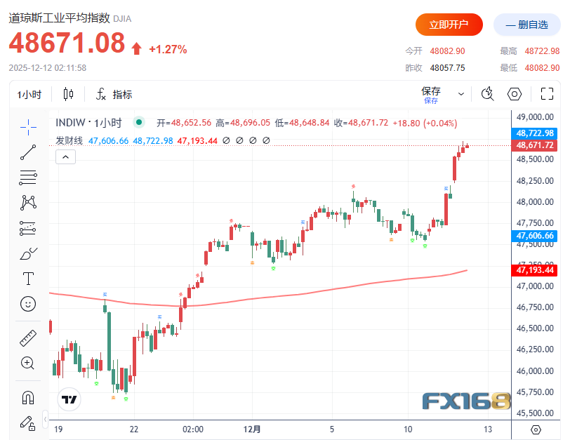 FX168財經報社(北美)訊 就在美聯儲主席鮑威爾昨日警告美國勞動力市場面臨「重大下行風險」後,最新數據便給出強烈驗證。週四(12月11日)公佈的數據顯示,美國初請失業金人數錄得自2020年以來最大單週增幅,顯示就業降溫速度遠超預期,進一步加深市場對未來經濟放緩的擔憂。然而,在科技股劇烈分化的背景下,資金加速涌向價值與週期板塊,道瓊斯指數大漲逾600點創下新高;與此同時,美元延續跌勢,比特幣亦持續走弱,風險資產正展開新一輪重新定價。
