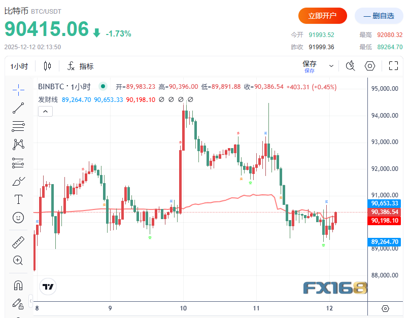 週四(12月11日)進入亞市盤中,比特幣在美聯儲降息 25 個基點後繼續徘徊在90,000 美元附近。美聯儲承認圍繞美國經濟前景的高度不確定性,市場焦點轉向日本央行決議。