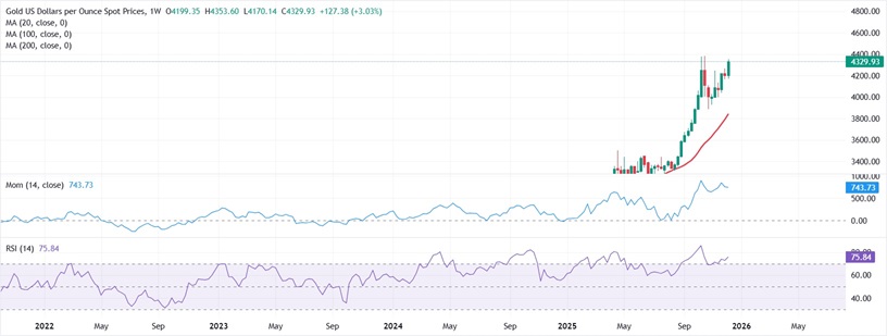 Bednarik表示,短期均線在4172美元/盎司附近提供動態支撐。技術指標已進入超買區域,且部分上漲勢頭減弱,暗示未來幾個交易日可能出現回調。儘管如此,整體上漲趨勢依然存在,投機情緒可能推動金價向4380美元/盎司及更高區域邁進。