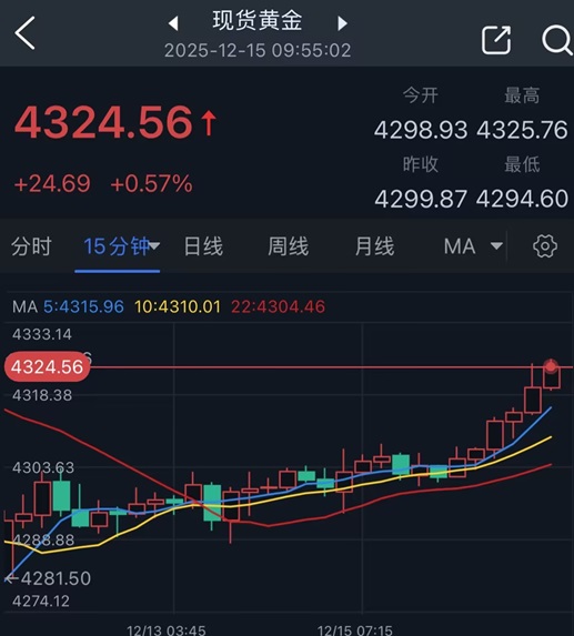 #黃金技術分析#24K99訊 週一(12月15日)亞市盤中,現貨黃金短線突然加速上漲,金價目前位於4325美元/盎司附近,日內大漲約25美元。FXStreet首席分析師Valeria Bednarik撰文,對金價技術走勢進行分析。