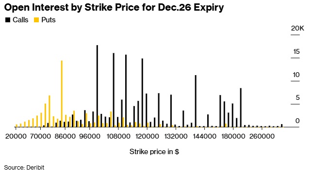 圍繞12月26日到期的持倉佈局反映了這種分歧。看漲期權主要集中在10萬美元和12萬美元的行權價附近,暗示市場對年末出現一波「喘息式反彈」仍抱有些許樂觀預期。