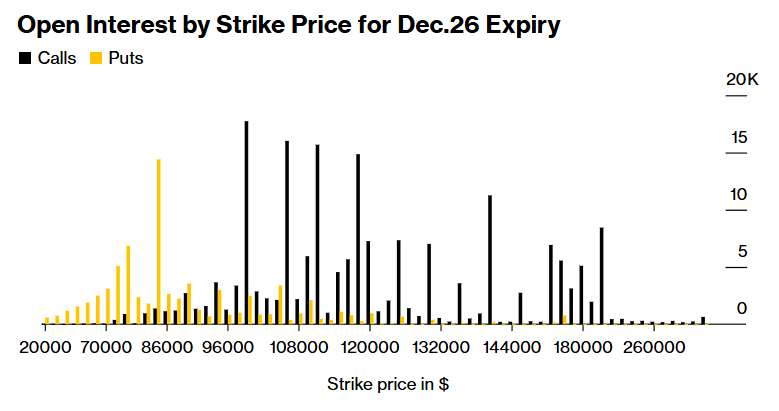 (12月26日到期期權的執行價未平倉分佈 來源:Deribit)